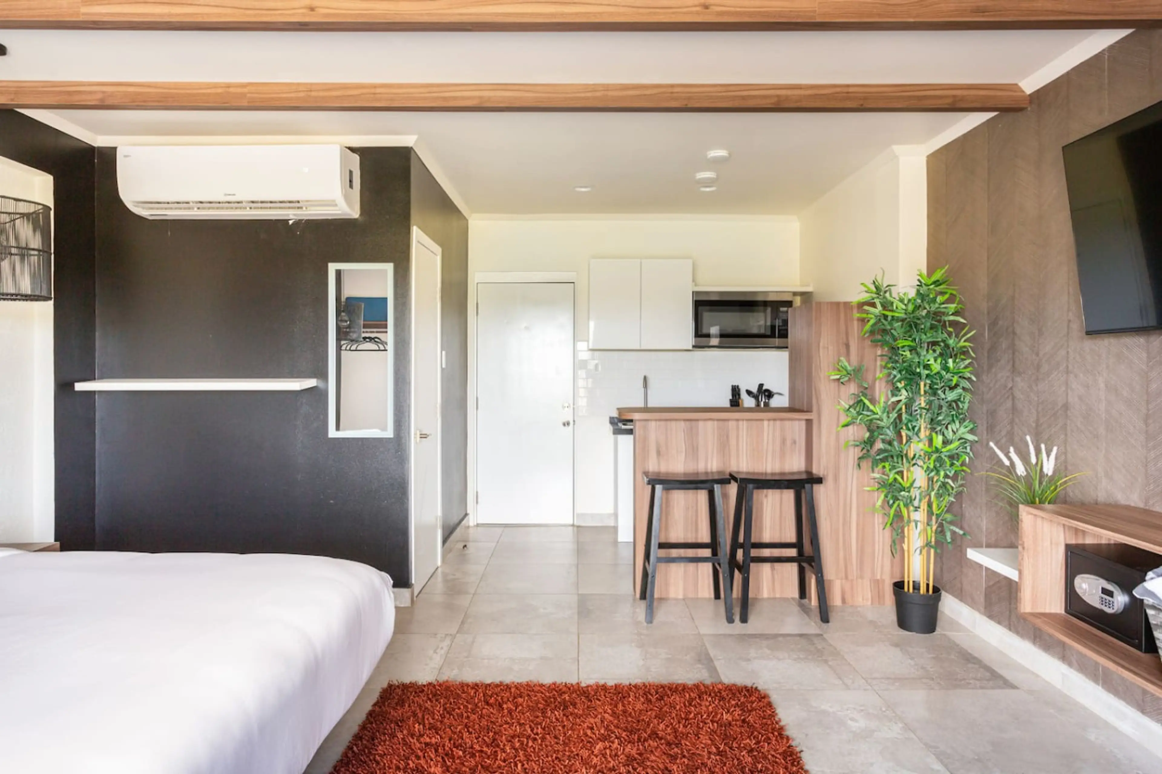 Charming & Cozy Studio in Aruba! Perfect for solo travelers or couples, our stylish studio apartment offers a comfortable retreat for up to 2 guests. Thoughtfully designed, the space features a fully equipped kitchen, a cozy sleeping area, a modern bathroom, air conditioning, and a Smart TV with Wi...