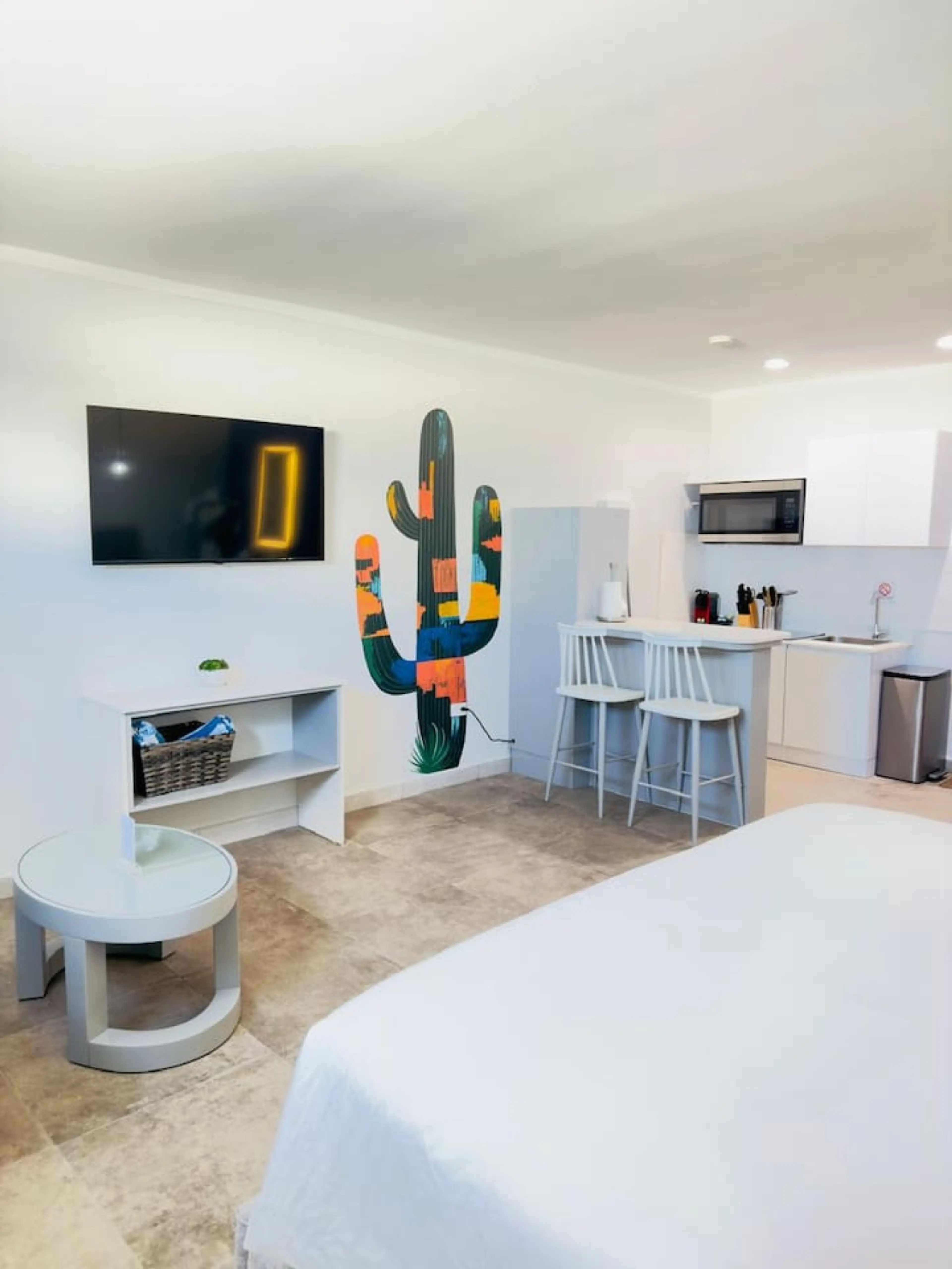 Charming & Cozy Studio in Aruba! Perfect for solo travelers or couples, our stylish studio apartment offers a comfortable retreat. Thoughtfully designed, the space features a fully equipped kitchen, a cozy sleeping area, a modern bathroom, air conditioning, and a Smart TV with Wi-Fi, ensuring a re...
