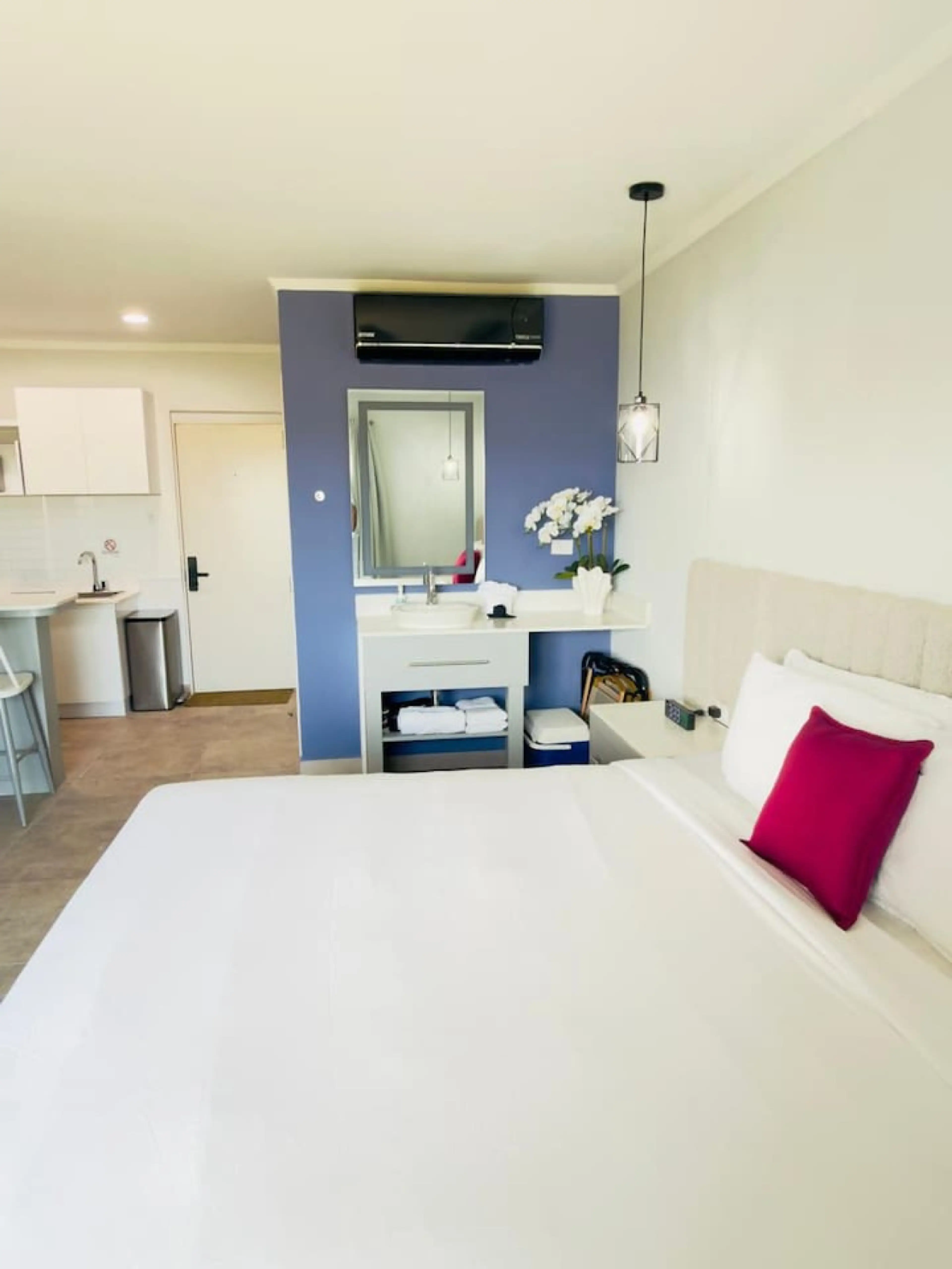 Charming & Cozy Studio in Aruba! Perfect for solo travelers or couples, our stylish studio apartment offers a comfortable retreat for up to 2 guests. Thoughtfully designed, the space features a fully equipped kitchen, a cozy sleeping area, a modern bathroom, air conditioning, and a Smart TV with W...