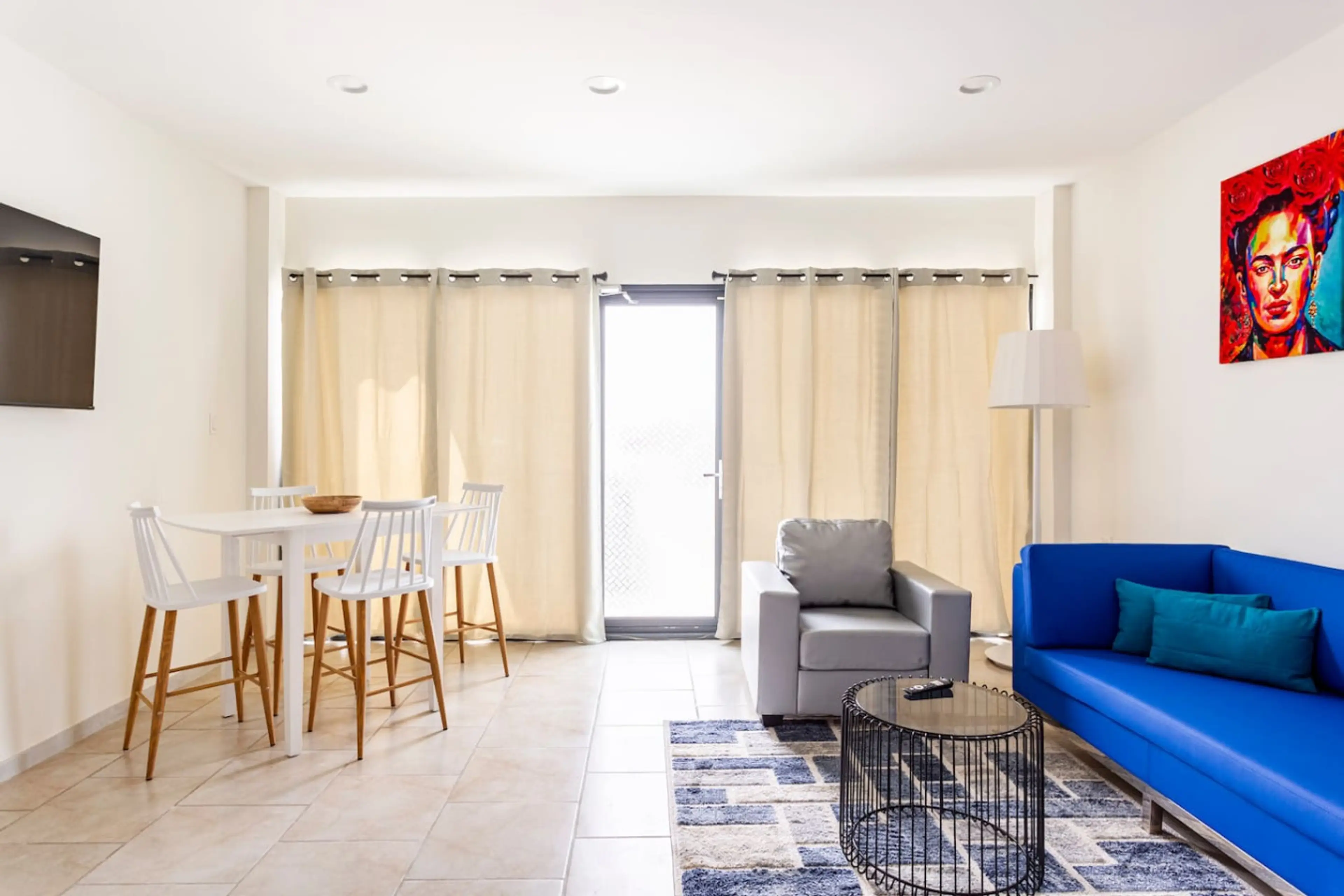 Cozy 2-Bedroom Getaway in Aruba! Our newly designed 2-bedroom apartment is perfect for up to 4 guests, offering a stylish and relaxing stay. Enjoy a fully equipped kitchen, comfortable sleeping area, modern bathroom, air conditioning, and a Smart TV with Wi-Fi—ideal for vacationers and remote work...